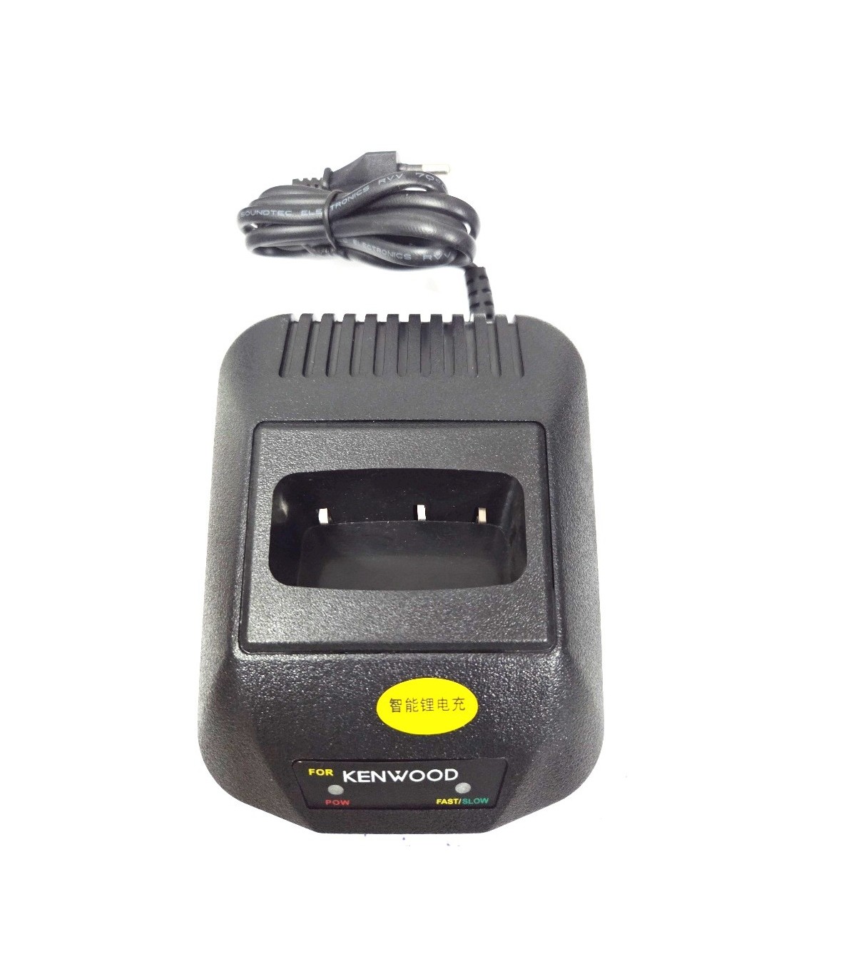 KSC-14: cargador rápido inteligente de escritorio de la marca Kenwood para paquetes de baterías como PB-6, PB-7, PB-8, PB-10, PB-32, PB-33, PB-34; PB-36, PB-37; KNB-11, KNB-12, etc. Carga baterías de 6v a 12v (NiCd y NiMH). Tiene indicadores LED de estado de carga y apagado automático